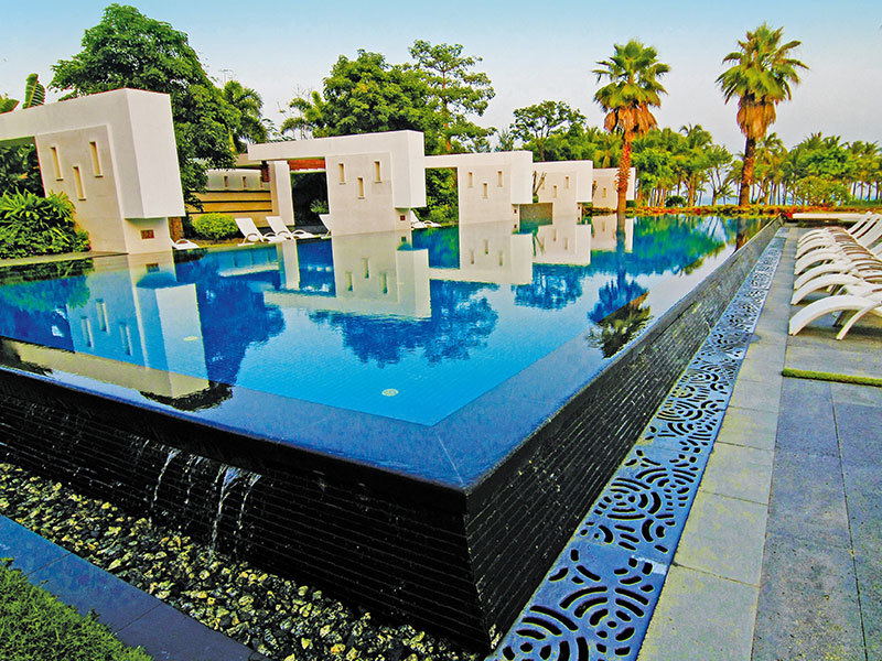 威斯汀度假酒店位于三亞海棠灣,是一家超五星級度假酒店,酒店猶如一座美麗迷人的熱帶天堂,俯瞰波瀾壯闊的南中國海。該酒店園林景觀施工面積約17萬平方米,内容涵蓋了硬質鋪裝、木作、雕塑、泳池、照明、綠化、給排水等。由于酒店坐落在海邊,施工中采取了“椰糠”改良沙土、對石材進行防堿化處理等新材料、新工藝,取得良好的施工效果。